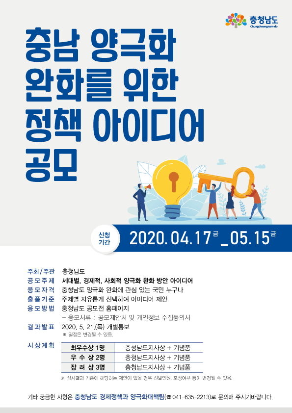 채택된 아이디어는 오는 6월 중 개최되는 ‘충남 양극화 극복 비전 발표식’에서 시상할 계획이다.