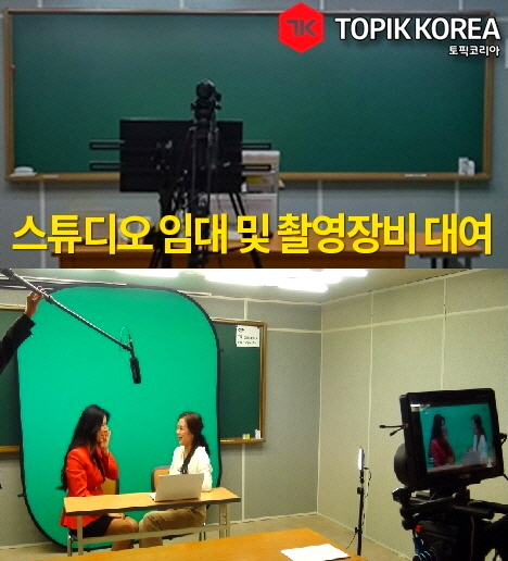 [쿠키뉴스] 정상호 기자 = 한국토픽교육센터 토픽코리아는 서울지하철 7호선 남성역 부근에 빔프로젝터, 칠판판서, 크로마키 강의 등 온라인강의, 인터넷강의 제작에 최적화된 스튜디오를 임대한다고 11일 밝혔다.