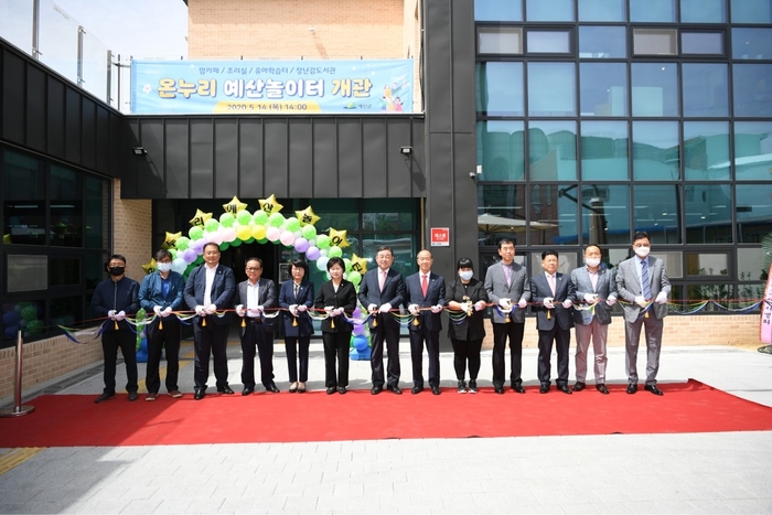 [예산=쿠키뉴스] 명정삼 기자 = 충남 예산군은 14일 예산군 예산읍 천변로 161번길 16에 위치한 온누리예산놀이터에서 황선봉 군수, 이승구 군의회 의장 등이 참석한 가운데 개관식을 개최했다.