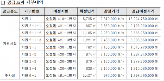 이번에 공급하는 지원시설용지의 필지당 면적은 762~5725㎡, 공급 예정가격은 3.3㎡당 712만~845만원이다. 건폐율 60%, 용적률 400%로 최고 7층까지 건축할 수 있다. 허용 용도는 판매 및 업무시설, 근린생활시설 등이다.