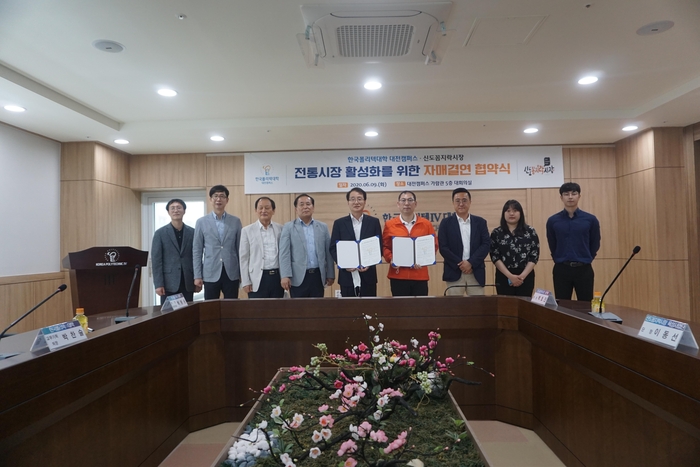 [대전=쿠키뉴스] 명정삼 기자 = 한국폴리텍대학 대전캠퍼스(학장직무대행 박봉순)는 9일 대전캠퍼스 가람관 대회의실에서 대전 동구 신도꼼지락시장(상인회장 백호진)과 전통시장 활성화를 위한 자매결연 협약식을 가졌다.