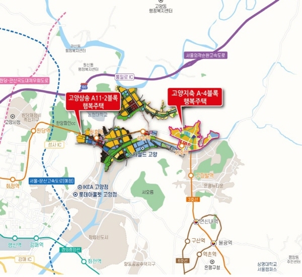 LH 관계자는 “고양지축 A-4블록과 고양삼송 A11-2블록은 지하철 3호선 지축역·원흥역 이용 시 서울 도심으로 연결되고, 서울외곽순환고속도로, 국도1호선, 지방도 제371호선 등도 이용할 수 있다”면서 “서울-문산고속도로와 GTX-A노선이 인근에 예정되어 있으며, 북한산 국립공원과 창릉천이 가까워 삶의 질도 기대할 수 있다"고 전했다.