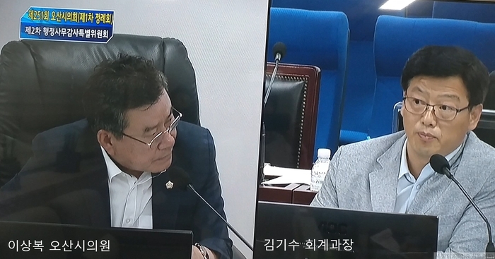[오산=쿠키뉴스 박진영 기자] 경기도 오산시의회 이상복 의원(미래통합당)은 제251회 오산시의회 제1차 정례회 기간 중 열린 행정사무감사에서 김기수 회계과장을 상대로 공유재산 관리계획 변경과 시청사 별관 및 의회청사 건립공사 착공에 따른 '임시주차장 부지 임대차 계약'과 관련해 설전을 벌였다.