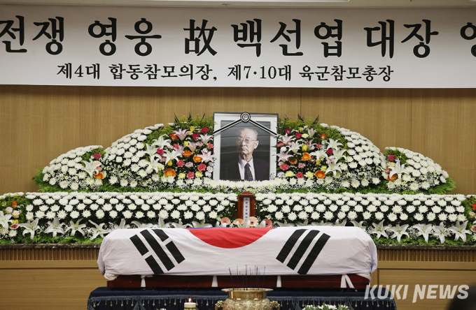 [쿠키뉴스] 박태현 기자 =15일 서울 송파구 서울아산병원 장례식장에서 고(故) 백선엽 장군의 영결식이 열리고 있다.