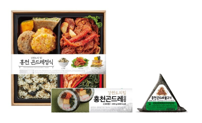 [홍천=쿠키뉴스] 하중천 기자 =코로나19(신종 코로나바이러스 감염증) 청정지역인 강원 홍천군에서 생산된 곤드레를 활용한 CU 편의점 간편식 3종이 출시됐다.