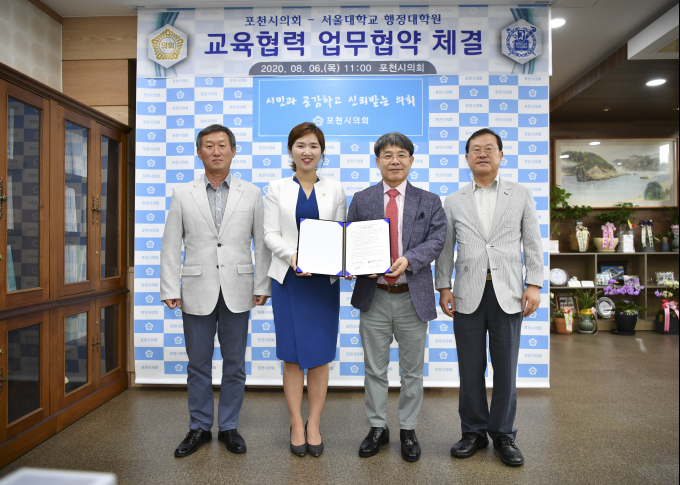 [포천=쿠키뉴스 윤형기 기자] 경기도 포천시의회는 인적·물적 자원 및 정보교류를 위해 서울대 행정대학원과 교육협력 업무협약을 체결했다고 10일 밝혔다.