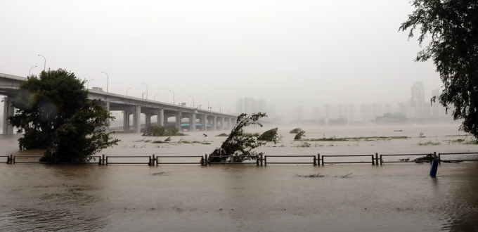 ▲장마가 계속되고 있는 11일 올림픽대로에 교통통제 안내문이 보이고 있다. / 연합뉴스한강과 인접한 도로의 통행도 통제됐다. 올림픽대로 여의상류와 여의하류 나들목, 동부간선도로 성수분기점~수락지하차도, 사천교·양재천교·영동1교 하부도로의 통행이 금지됐다. 잠수교는 지난 2일부터 통행금지가 해제되지 않고 있다.