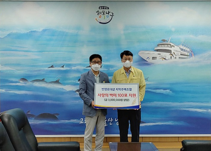 울산 남구청 김진규 구청장은 “지역사회에 관심을 기울이고 나눔의 실천에 앞장서는 ‘번영로더샵 지역주택조합’에 감사드린다"면서 "지역의 꼭 필요하신 분들에게 전달하겠다”며 감사의 말을 전했다.