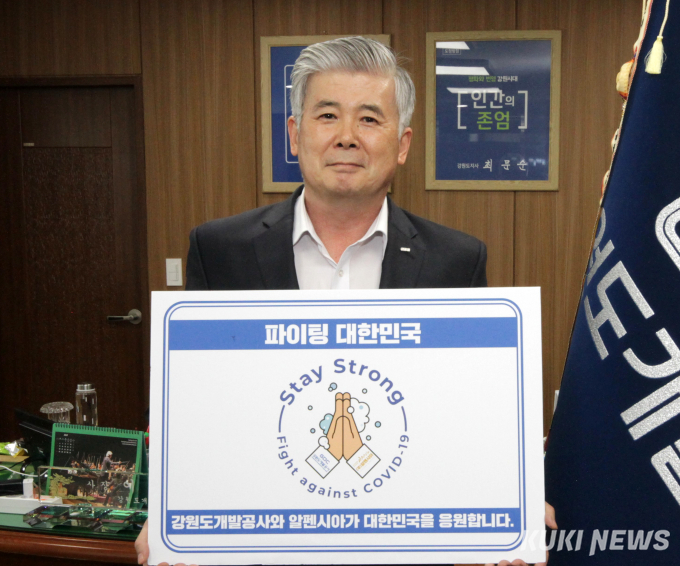 [춘천=쿠키뉴스] 하중천 기자 =강원도개발공사(사장 이만희)는 코로나19(신종 코로나바이러스 감염증) 극복 및 조기 종식을 위해 ‘스테이 스트롱(Stay Strong) 캠페인’에 동참했다고 21일 밝혔다.