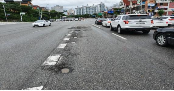 이는 장마기간 포장 균열부로 많은 양의 빗물이 스며들었고, 차량통행에 의한 수압증대로 약해진 부위의 아스팔트 포장층이 떨어져 나간데 따른 것으로 도는 파악했다.