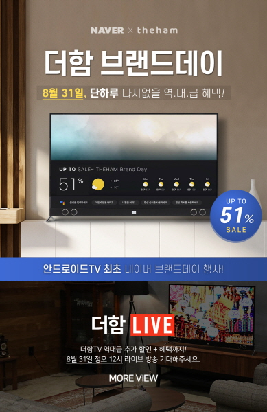 [쿠키뉴스] 김영보 기자 = 더함(더바오파트너스, 대표 김승진)은 오는 31일 네이버 브렌드데이를 통해 ‘쇼핑라이브’를 함께 진행한다고 밝혔다.