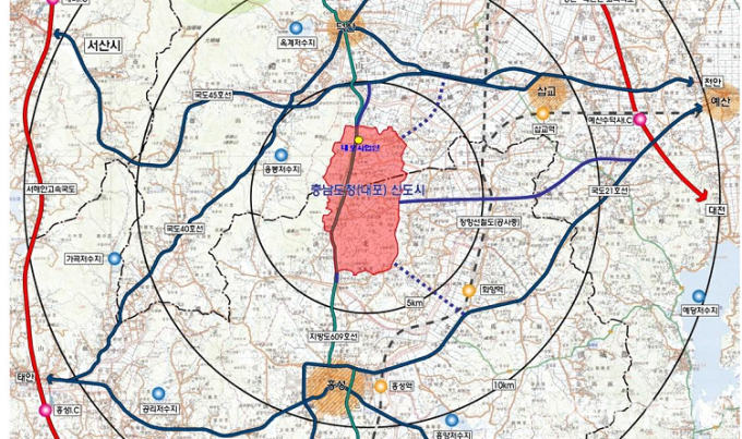 교통여건은 서해안 고속도로 홍성 IC가 13km, 당진영덕고속도로 예산수덕사IC와 고덕IC가 약 11km 거리에 위치하고, 지난해 삽교방향 내포신도시~국도45호선 연계도로가 개통되는 등 우수한 광역교통망을 갖추고 있다.