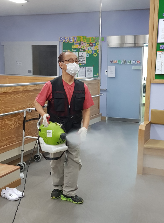[청양=쿠키뉴스] 오명규 기자 = 청양 정산면 백곡1리 새에덴감리교회에서 목회활동 중인 윤재천 목사는 지난 2월부터 자비로 방역 소독기와 약품을 구입, 정산면과 목면지역 공공기관을 비롯해 바이러스 감염에 취약한 요양시설, 경로당 등 60여 곳에서 7개월째 코로나19 확산을 막기 위한 자원 봉사방역활동을 펼치고 있어 귀감이 되고 있다.