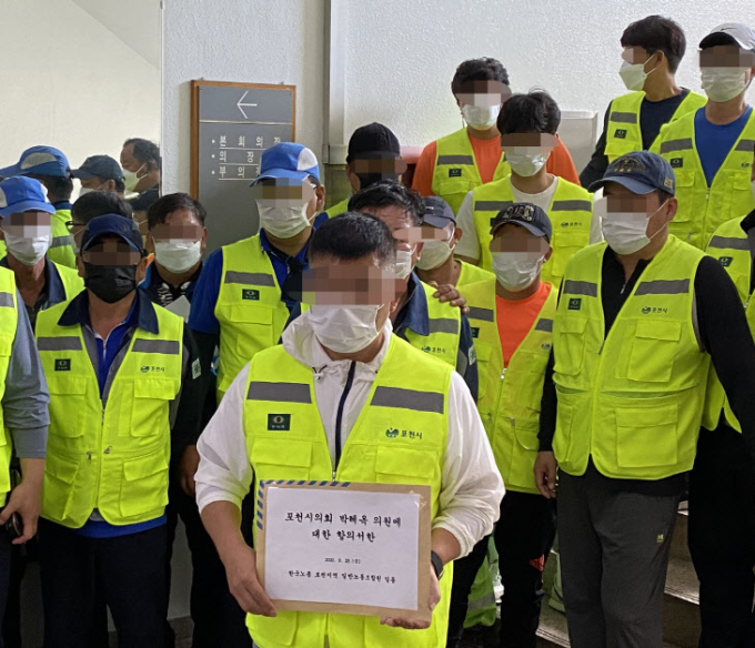 그러면서 "포천시의회 윤리규정을 위반하고, 정상적인 노조 활동을 하는 노조 대표에게 모욕적인 언동을 한 박 의원의 처사를 도저히 묵과할 수 없다"고 목소리를 높였다.