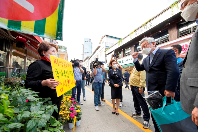 또 이 지사는 현장에서 만난 상인과 시민들에게 추석 인사를 나누며 고향에 가지 못하는 아쉬움에 대한 위로를 건네기도 했다.