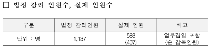 더욱이 이 중 181명은 여러 현장 감리 업무를 겸임하고 있고, 업무를 겸임하고 있지 않은 순 감리 인원은 407명에 불과했다.