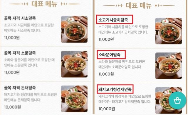 해당 업체는 당초 ‘골목 저격 시소덮죽’ ‘골목 저격 소문덮죽’ ‘골목 저격 돈채덮죽’ 등의 이름으로 메뉴를 출시했지만 논란이 확대되자 ‘소고기시금치덮죽’ ‘소라문어덮죽’ ‘돼지고기청경채덮죽’으로 메뉴명을 수정하고 현재 배달을 중단한 상태다.