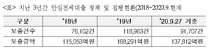 안심전세대출은 보증건수와 보증금액은 매년 증가세에 있다. 주택도시보증공사에 따르면 올해 9월 기준으로 보증건수는 9만1707건, 보증금액은 13조7812억원에 이른다. 전세금융상품의 특성상 구비서류가 많고 절차가 까다로운 것은 사실이나, 일반 국민에게 다소 어려운 절차 설명과 위탁은행의 인지 부족으로 관련 불만은 계속 제기될 것으로 예상된다.