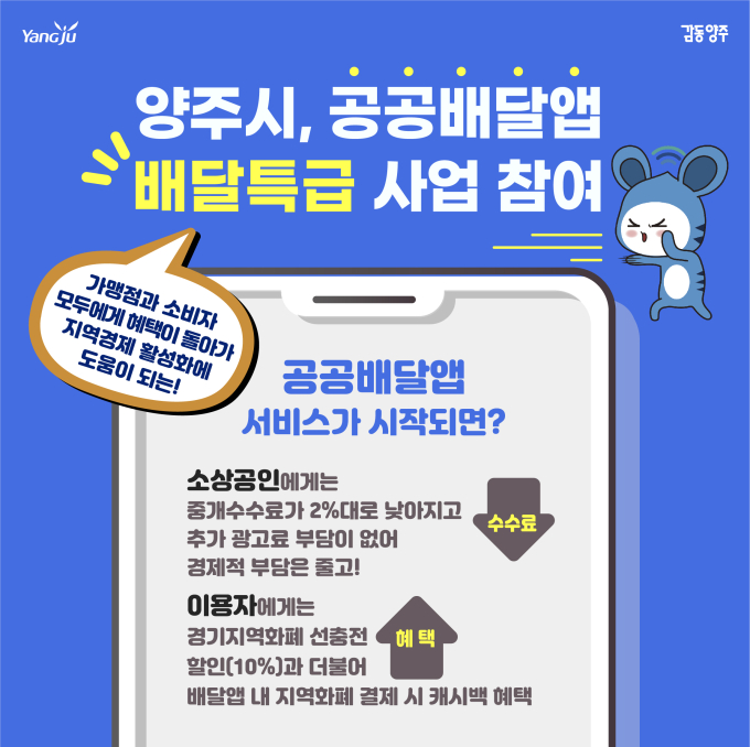 [양주=쿠키뉴스 윤형기 기자] 경기도 양주시는 경기도 공공배달앱 '배달특급' 2차 확대 사업에 참여한다고 21일 밝혔다.
