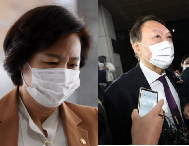 보폭을 넓히고 있는 윤 총장에 대한 추 장관의 반격도 만만찮다. 추 장관은 윤 총장이 강연에 나서기 직전 "검찰총장의 언행과 행보가 오히려 검찰의 정치적 중립을 훼손하고 국민적 신뢰를 추락시키고 있는 작금의 상황을 매우 중차대한 문제라고 생각한다"며 또다시 직격탄을 날렸다. 현재 벌어지고 있는 검찰과의 갈등 책임이 윤 총장에게 있다고 비판한 것이다.