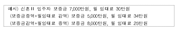 반면, 임대료 부담을 낮추고 싶은 입주자의 경우 보증금 200만원을 인상하면 월 임대료가 1만원 낮아지므로, 입주자는 자신의 경제상황을 고려해 보증금과 임대료 수준을 정하면 된다.