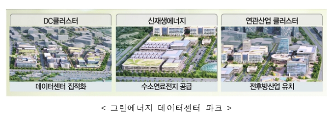 이번 그린에너지 데이터센터 파크는 데이터센터 클러스터, 신재생에너지 클러스터, 연관 산업 클러스터로 구성되며, 약 4조원을 들여 90천㎡ 이상의 규모로 조성된다.