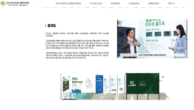 이번 경기도의 온라인 전시관을 관람하려면 '2020 대한민국 균형발전박람회 공식 홈페이지'에 접속한 후 지역균형뉴딜관의 경기도관을 클릭하면 된다.