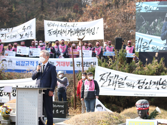 이어 "그래서 중대재해기업처벌법과 고의적 불법행위에 대한 징벌배상제를 반드시 도입해야 한다. 규칙을 어기면 이익을 볼 수 없고 규칙을 지키는 것이 손해가 되지 않는 합리적인 사회를 만드는 것이 열사의 뜻을 이어가는 길"이라고 강조했다.