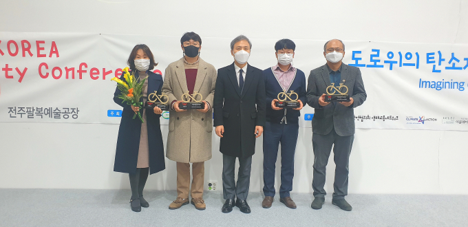[진주=쿠키뉴스] 강연만 기자 = 경남 진주시(시장 조규일)가 16일 오후 2시 전북 전주시 팔복예술공장에서 열린 한국기후‧환경네트워크 주관 '전국 자전거 라이딩 배틀 시상식'에서 자전거 출‧퇴근 챌린지 온실가스감축 부문 최우수도시로 선정됐다.