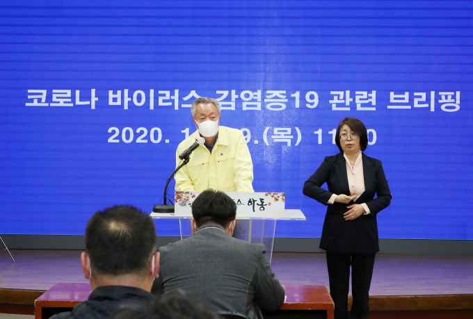 윤상기 군수는 지난 18일에 이어 19일 군청 소회의실에서 기자 브리핑을 열어 지난 사흘간의 코로나 확진자와 검사 진행상황, 방역대책 추진 사항 등을 상세히 설명하고 기자들의 질문에 답했다.