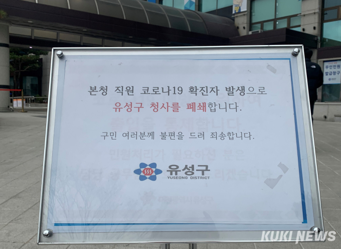 유성구 관계자는 “확진자 발생으로 직원 전수검사와 방역을 위해 구 청사를 폐쇄하게 됐다”며, “대민 행정서비스에 공백이 발생하지 않도록 최선을 다 하겠다”고 말했다.