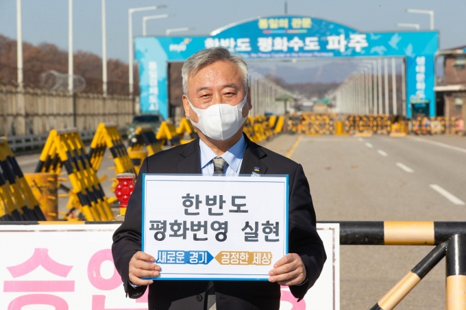 이 부지사는 통일대교 남단에서 북단까지 총 0.9㎞ 구간에서 1인 삼보일배를 통해 '평화 선도 지자체'인 경기도의 강력한 의지를 보여줄 방침이다.