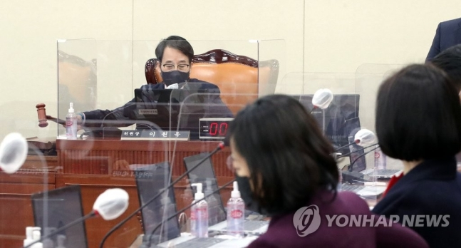 또 윤 위원장은 지난 9일 공수처법 개정안 강행처리를 비판하는 특정 언론을 꼬집어 "일부 언론, 특히 조수진 의원이 몸담았던 언론인 것 같은데 우리 위원회가 법안처리 과정을 기습상정, 토론무시, 기립표결로 처리했다고 쓴다"며 "기립표결은 팩트니까 말씀을 안 드리지만, 기습상정과 토론무시는 한 적이 없다"고 주장했다.