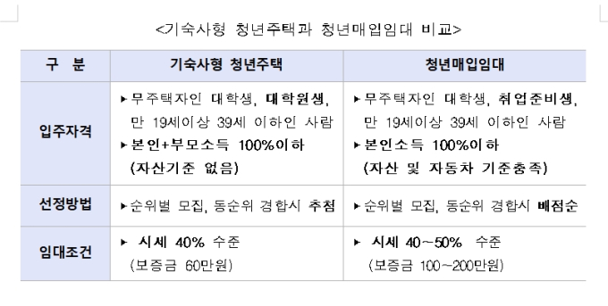 기숙사형 청년주택 및 청년매입임대주택은 대학 내 기숙사 부족 현상을 보완하고, 직주근접을 선호하는 청년층의 주거지원을 위해 LH가 기존주택을 매입 후 시세보다 저렴한 수준으로 공급하는 임대주택이다.