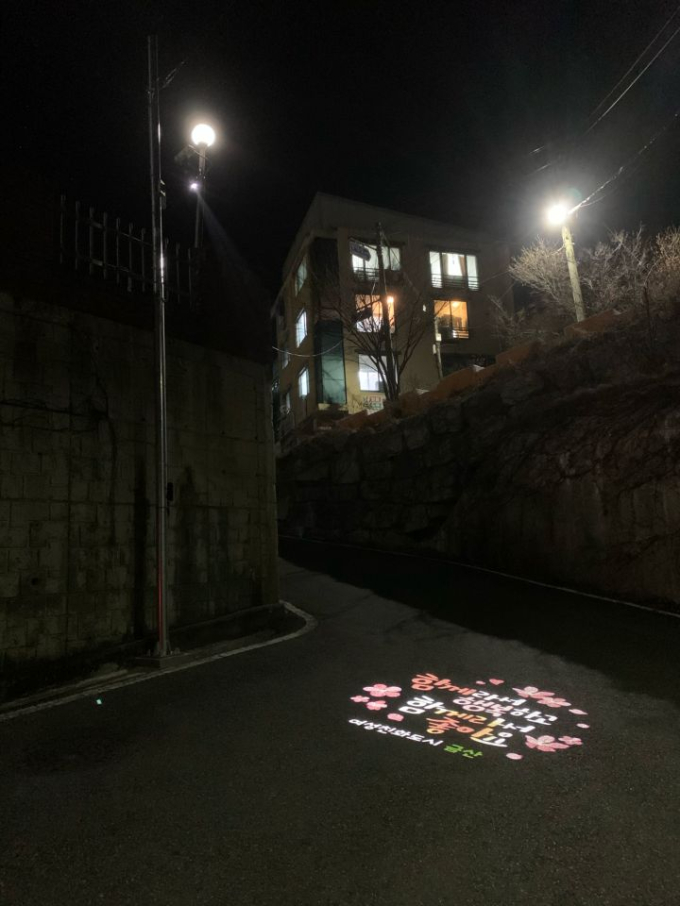 [금산=쿠키뉴스] 명정삼 기자 = 충남 금산군(군수 문정우)은 지난 29일 여성·아동 안심귀갓길 '로고젝터'를 금산읍 하옥리 금산시네마 인근 3개소에 설치했다고 30일 발표했다.