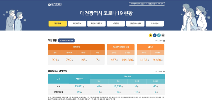 [대전=쿠키뉴스] 명정삼 기자 = 대전시(시장 허태정)는 '코로나19' 확진자가 6일 밤새 1명 추가 발생, 누적 확진자는 901명으로 늘었다고 7일 발표했다.