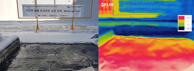 더불어 낮은 전력으로 경제성을 확보하는 것이 목표다. 이미 DL이앤씨는 휴대폰 충전 전류보다도 낮은 전력으로 최대 약 60°C까지 발열이 가능한 성능을 검증했. 앞으로 추가 연구 개발을 통해서 상용화가 가능한 품질과 시공성을 확보할 계획이다.