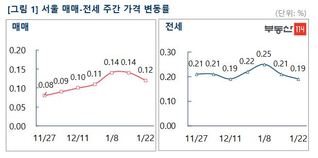 [쿠키뉴스] 조계원 기자 =서울 아파트 매매와 전세가격 상승폭이 전주 대비 둔화됐다는 조사결과가 나왔다. 가격 부담이 커진 데다 겨울철 한파까지 겹치면서 수요자들의 움직임이 둔화된 영향이라는 분석이 나온다.