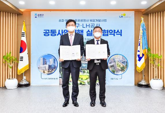 [쿠키뉴스] 조계원 기자 =한국토지주택공사(LH)는 3일 송파구청에서 송파구와 함께 ‘송파방이 노후공공청사 복합개발사업 공동시행 협약’을 체결했다고 밝혔다.