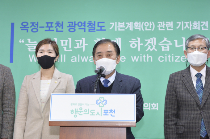 박윤국 포천시장은 8일 이 같은 내용을 담은 '옥정-포천 광역철도 기본계획(안)' 관련 입장문을 비대면 온라인을 통해 밝혔다.박 시장은 입장문에서 "지난해 12월 공청회가 무산된 이후 합리적인 대안을 마련하기 위해 정세균 국무총리와 정성호 국회 예결위원장, 변창흠 국토교통부 장관, 서울교통공사 관계자 등과 만나며 당초 기본계획(안)인 단선 환승에서 한 단계 발전한 복선 건설 대안을 도출했다"고 말했다.