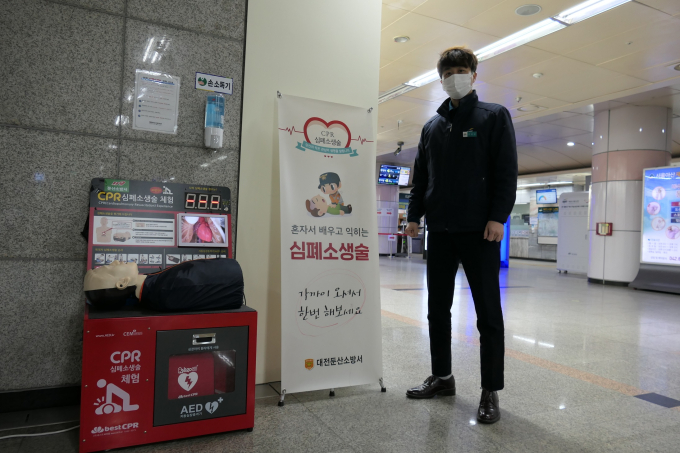 [대전=쿠키뉴스] 명정삼 기자 = 둔산소방서에서 설치한 CPR체험대로 심폐소생술을 익혀 심정지 환자 소생에 기여했다는 사실이 뒤늦게 알려져 화제다.
