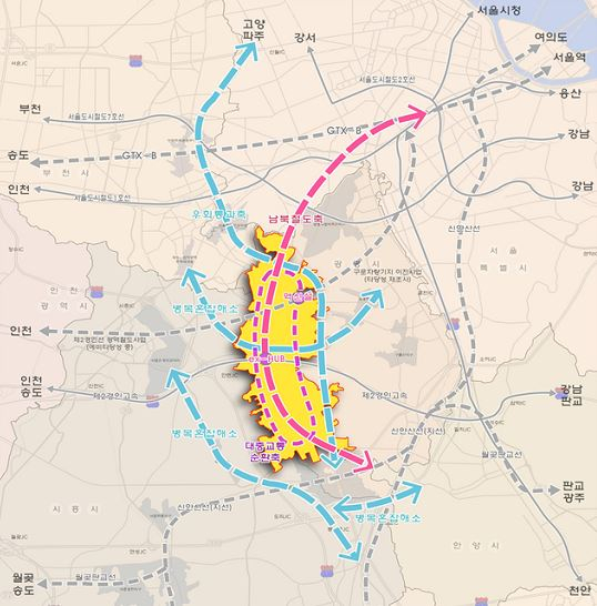 정부는 이를 통해 여의도 20분, 서울역 25분(GTX 환승), 강남역 45분(2호선 환승)내 진입이 가능하도록 교통체계를 구축하겠다는 계획이다. 현재 대중교통이나 자가용을 이용할 경우 여의도 55~70분, 서울역 65~78분, 강남역 80분 수준인 접근 시간을 대폭 단축하겠다는 것.