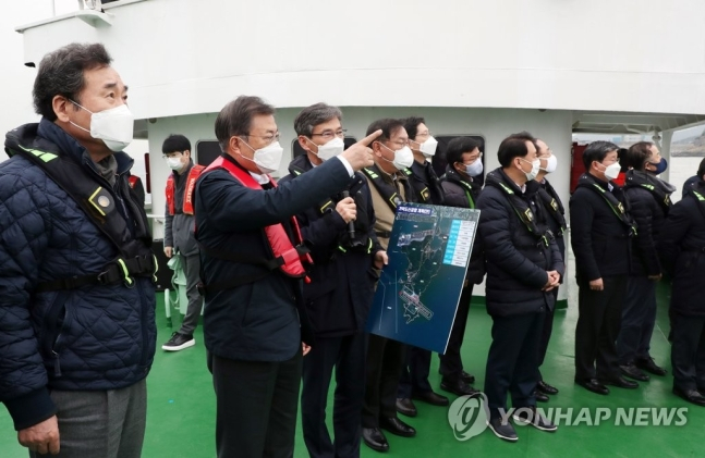 문 대통령은 25일 부산 부전역에서 진행된 '동남권 메가시티 구축 전략 보고' 행사에 참석한 후 곧바로 가덕도 신공항 예정부지로 향했다. 이날 문 대통령 일정은 한국판 뉴딜의 핵심인 지역균형 뉴딜과 관련한 현장 방문이다.