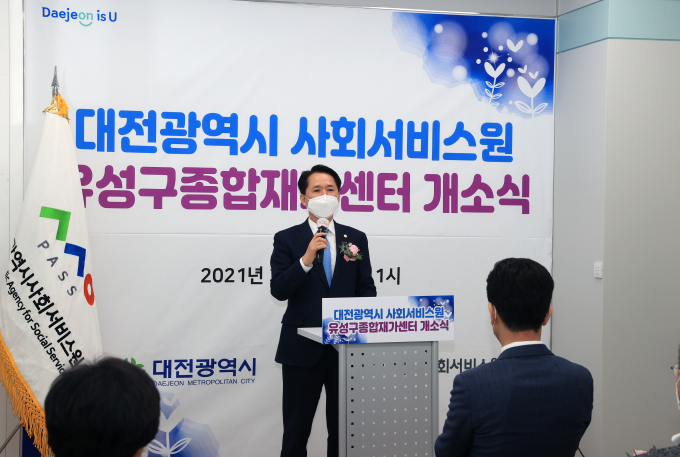 [대전=쿠키뉴스] 명정삼 기자 =대전시의회 권중순 의장은 9일 서구 및 유성구 종합재가센터 개소식에 참석했다.