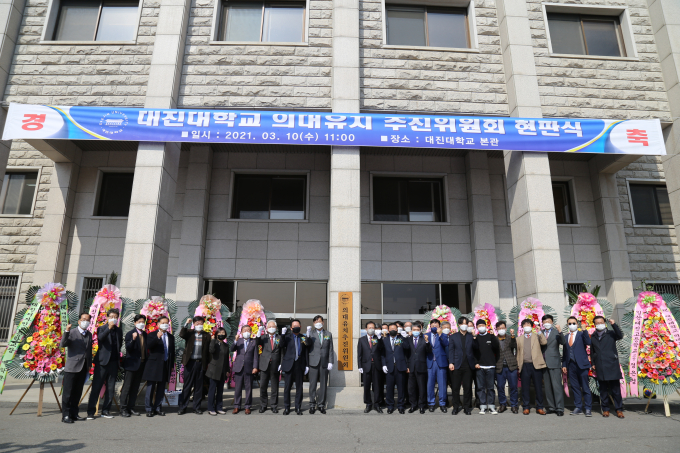대진대는 10일 본관에서 이사진과 보직교수, 학생대표, 동문대표 등 50여명이 참석한 가운데 의대유치추진위원회 현판식을 가졌다.