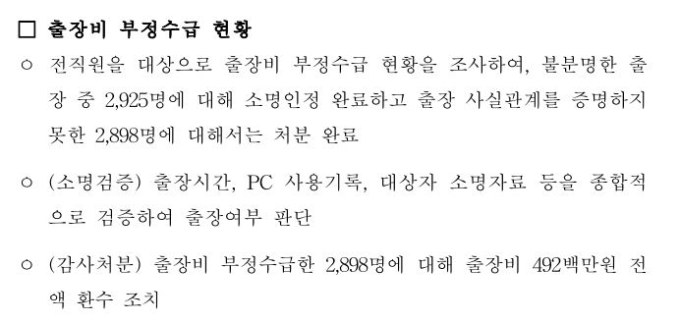 특히 김 의원 측은 LH가 출장비 부정수급과 관련해 환수 조치 후 어떤 인사 조치도 시행하지 않았다고 밝혔다. 변창흠 장관이 LH 사장으로 재직한 지난해 4월 감사실 조사계획서를 보면, 부정출장 확인 시 부정 수령액 환수 및 인적 처분을 내린다고 명시했지만 3000명에 육박하는 직원들에게 인사 조치는 단 한 건도 없었다는 설명이다.