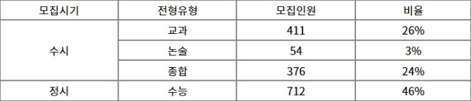 전형 유형별로 보면 약대는 수시에서는 교과전형을 통해 가장 많은 411명을 모집하고, 종합전형 376명, 논술전형에서 가장 적은 54명을 선발한다.