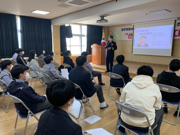 [공주=쿠키뉴스] 오명규 기자 =공주경찰서는 심은석 서장이 A중학교 전교생을 대상으로 ‘학교 폭력 예방과 청소년의 밝은 미래’를 주제로 특별교육을 실시하였다고 31일 밝혔다.