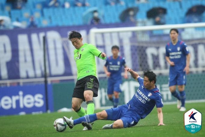 아찔한 장면들도 여럿 있었다. 팔꿈치와 백태클 등 자칫 부상으로 이어질 수 있는 장면들이 수차례 발생했다. 퇴장이 나와도 이상하지 않았다. 비가 거세게 쏟아지는 상황 속에서도 선수들은 거친 경기를 이어갔다.