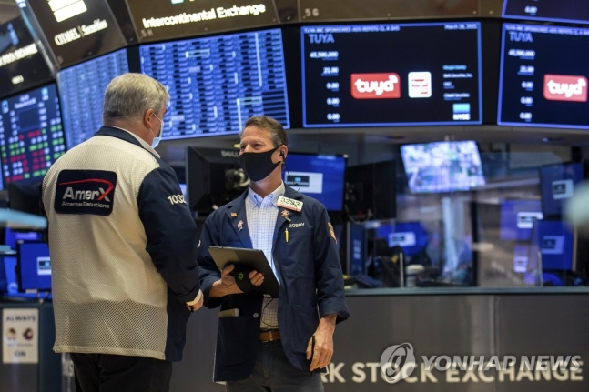 6일(현지시간) 뉴욕증권거래소(NYSE)에서 다우존스30산업평균지수는 전날보다 96.95포인트(0.29%) 하락한 3만3430.24에 장을 마쳤다.